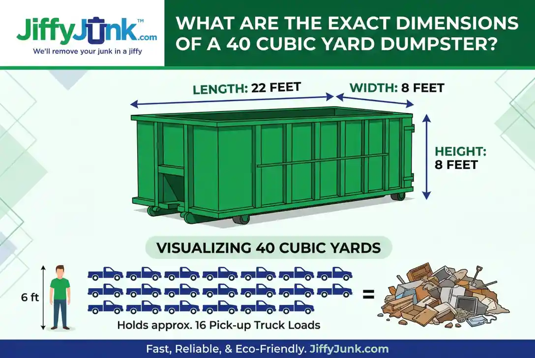 Q: What are the exact dimensions of a 40 cubic yard dumpster?